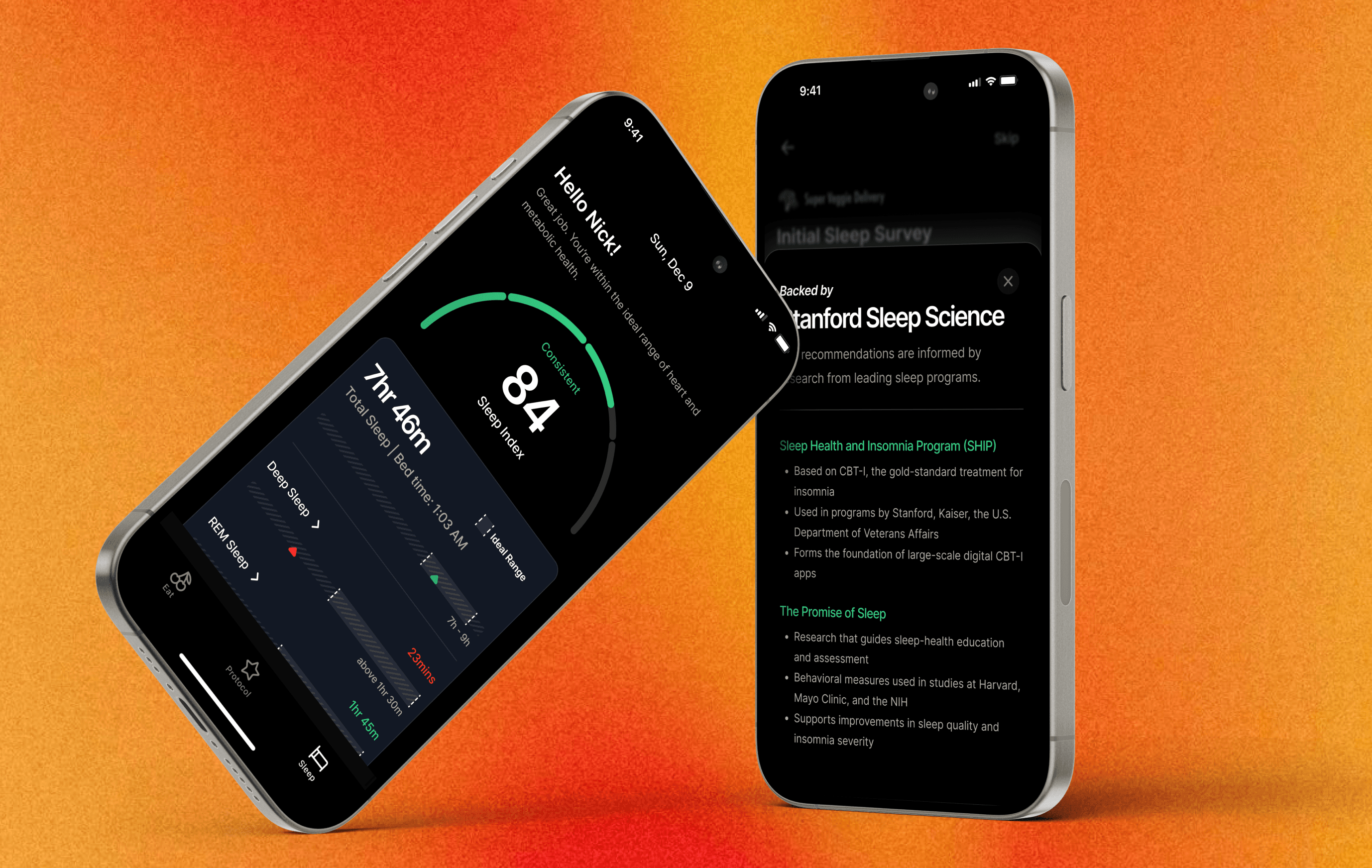 The changes focus on reducing cognitive load, improving decision confidence, and removing friction at key moments in both the sleep and meal flows.